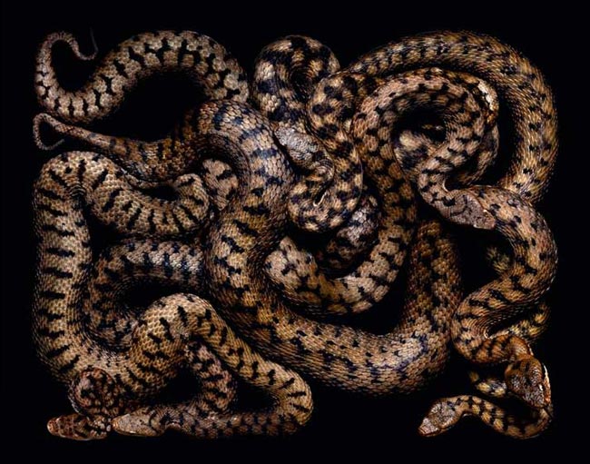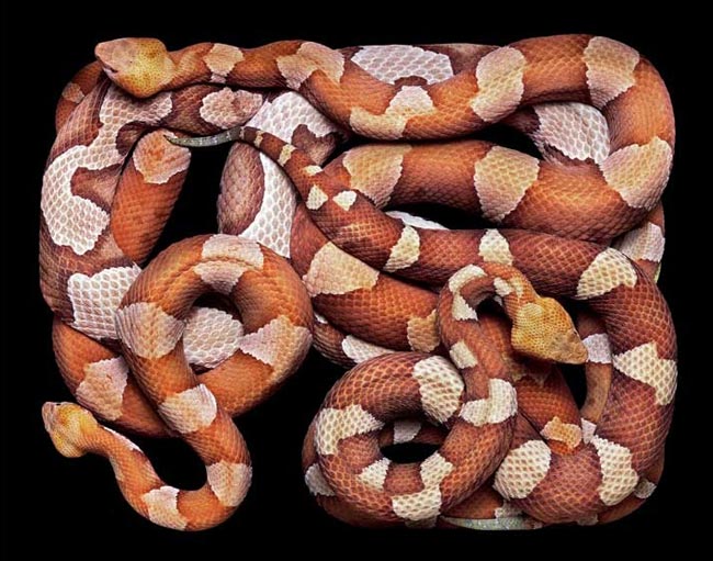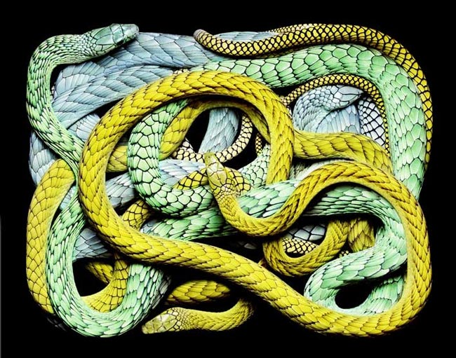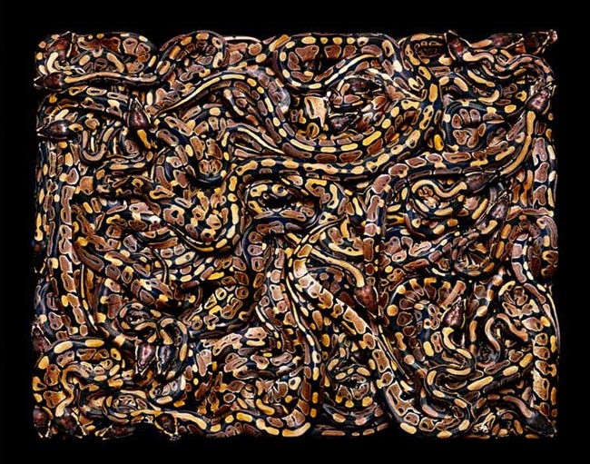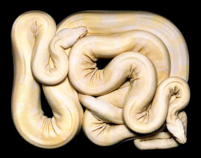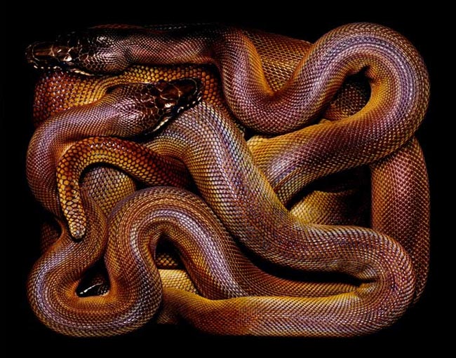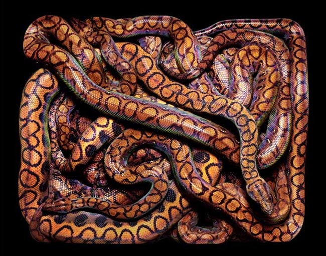 این مارهای پیتون رجیوس در کنار هم نقشی زنده و زیبا را پدید آورده‌اند.