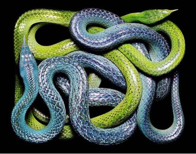 مارهای اپودورا پاپوآنا که در این تصویر می‌بینید، شاید نقش‌و نگار زیادی نداشته باشند،‌ اما روی بدن خود طیفی گسترده از رنگ‌هایی بسیار هماهنگ را جای داده‌اند که بسیار هم چشم‌نواز است.