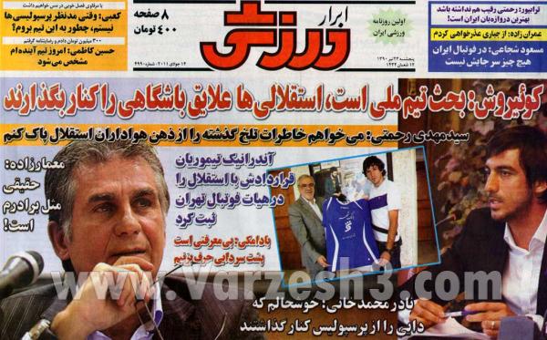 صفحه نخست روزنامه های ورزشی امروز (عکس)