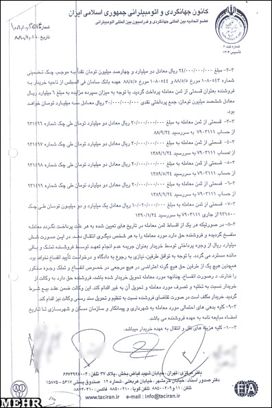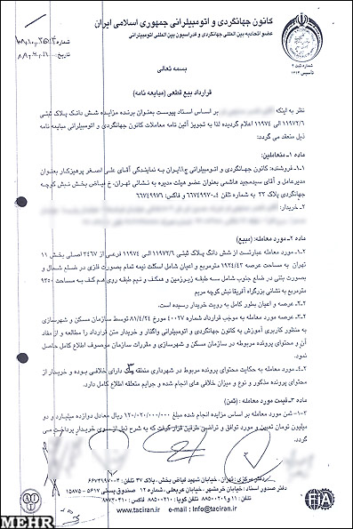 مورد معامله 6 دانگ پلاک ثبتی با اعیان نه هزار مترمربع در خیابان آفریقا بوده است. در این قرارداد آمده که عرصه مورد معامله توسط سازمان مسکن و شهرسازی به منظور کاربری آموزشی به کانون اتومبیلرانی واگذار شده است.