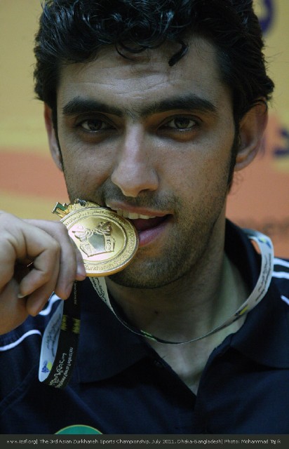 اهدای مدال به قهرمانان مسابقات زورخانه ای آسیا (گزارش تصویری)