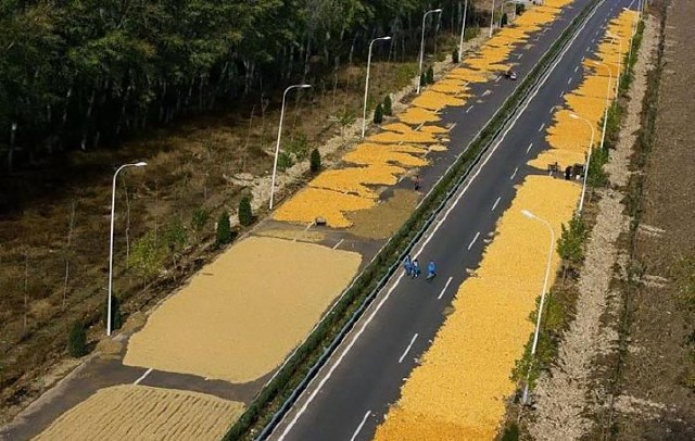 خشکاندن ذرت در کنار بزرگراههای پکن
