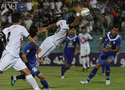 صحنه‌ای از مسابقه شاهین - ملوان که با تساوی بدون گل به پایان رسید.