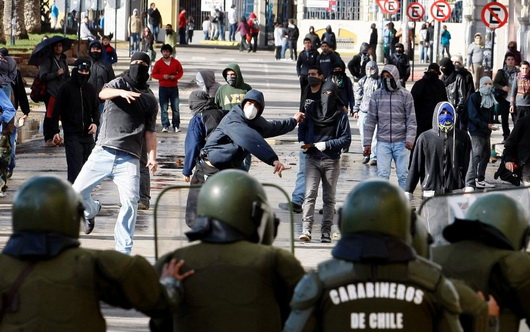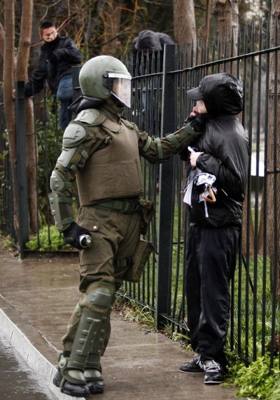 پلیس شیلی در جریان این تظاهرات چند سنگر كه با سنگ و چوب بر پا شده بودند، را بر هم ریخت و با عده ای از افراد نقاب زده كه اكثر آنها زیر 18 سال داشتند، درگیر شده و با گاز اشك آور آنها را از محل دور كرد.