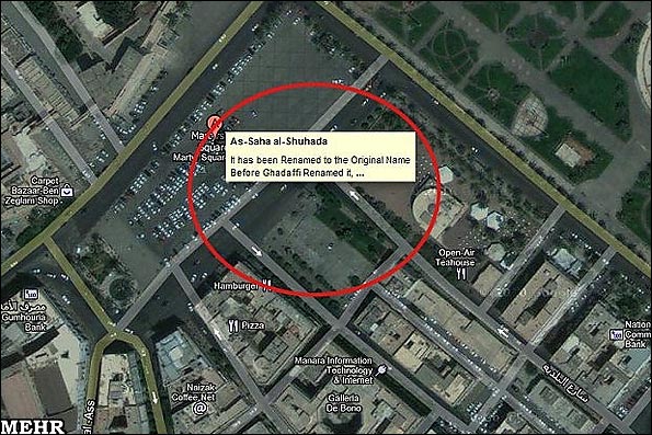سرویس "گوگل مپس" در کنار انقلابیون لیبی نام "میدان خضراء" شهر طرابلس را رسماً بر روی نقشه های خود به "میدان شهدا" تغییر داد.