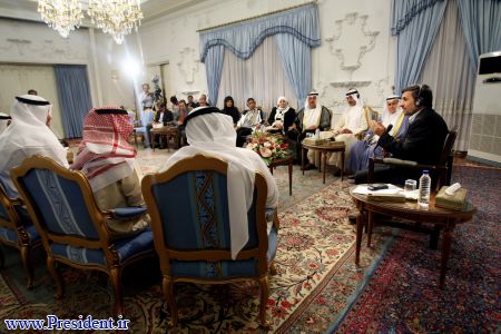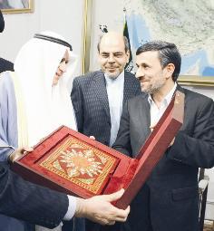 احمد بهبهانی رئیس انجمن روزنامه نگاران کویت به نمایندگی از هیات رسانه ای این کشور، یک جلد قرآن کریم نفیس را به احمدی نژاد تقدیم کرد.