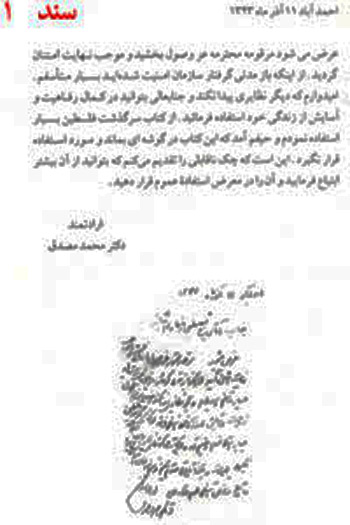 اين هم سندي كه گوياي مظلوميت دكتر مصدق مي باشد و طرفدار و دوستدار ملت مظلوم فلسطين.