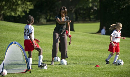 عکس/ همسر اوباما هم پا به توپ شد