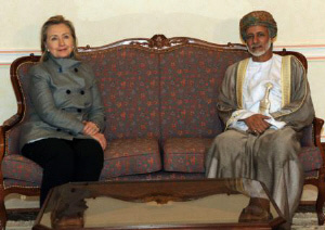 هيلاري كلينتون وزير امور خارجه آمريكا روز گذشته در سفر به عمان با سلطان قابوس ديدار و گفتگو كرد.