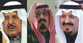 شاهزاده سلطان (ولیعهد متوفی)، ملک عبدالله (پادشاه) و شاهزاده نایف (وزیر کشور)