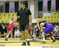 علیرضا حیدری مجدداً بر روی تشک کشتی تمرین می کند.
