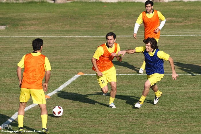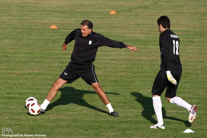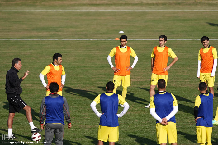 سرمربی تیم ملی بازیکنان را به ۲ گروه آبی و نارنجی تقسیم کرد تا در یک سوم زمین فوتبال فشرده را بازی کنند. این تمرین پر فشار به همراه گلرهای تیم ملی برگزار شد.