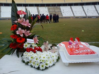 بازیکنان تیم پس از برگزاری این مراسم با یکدیگر هم قسم شدند که به عنوان هدیه تولد به امیر خان 3 امتیاز شیرین بازی با راه آهن را به دست آورند.