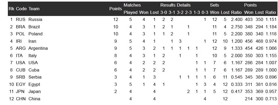 رده بندی مسابقات جهانی والیبال(عکس)