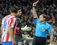 اما 9 دقیقه بعد کریس رونالدو با ضربه پنالتی دروازه اتلتیکو را باز کرد و حساب کار 1 بر 1 شد. پنالتی رئال منجر به اخراج کورتویس دروازه بان اتلتیکو شد و این تیم را از دقیقه 24 بازی، ده نفره کرد.