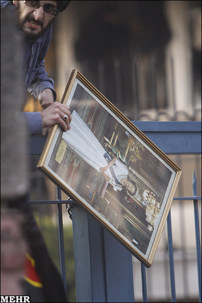 حمله به سفارت انگلیس در تهران و تخریب بخشی از اموال آن توسط معترضین به سیاست های بریتانیا - عکس از خبرگزاری مهر
