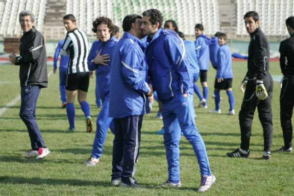 تصویر دوم نیز لحظه روبوسی مظلومی و جباری بعد از خاتمه جلسه سرپایی استقلالی ها را نشان می دهد؛ لحظه ای که لبخند را بر لب سایر بازیکنان حاضر در تصویر نشانده است.