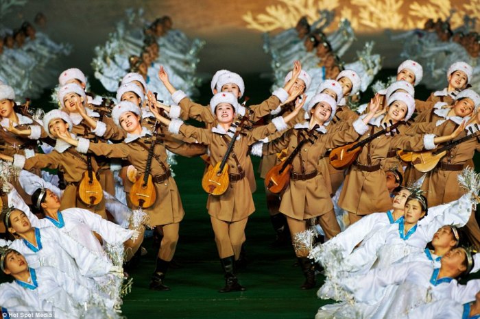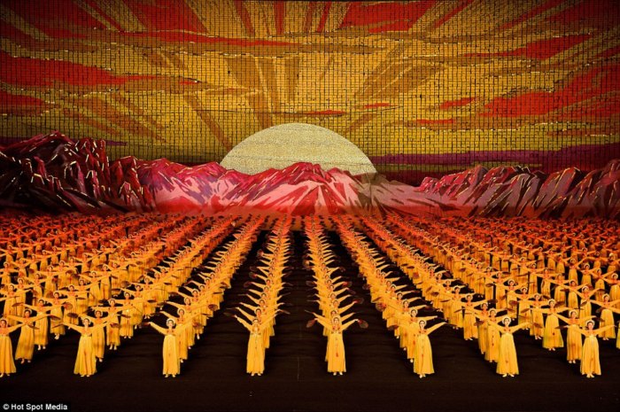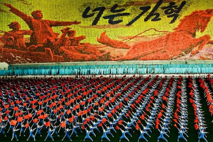 برای نخستین بار یک عکاس آلمانی مقامهای کمونیستی کره شمالی را متقاعد کرده که اجازه دهند تا از نزدیک از برگزاری یک مراسم عمومی در استادیوم ملی این کشور عکاسی کند. بر اساس این گزارس، بیش از 100 هزار تن از شهروندان کره شمالی که اغلب آنان ژیمناستیککار بودهاند در این مراسم شرکت داشتهاند. گفته شده که سرعت و دقت بسیار زیاد این گروه بزرگ از مجریان این مراسم، برای عکاس آلمانی که برای نخستین بار توانسته بوده تا از نزدیک شاهد برگزاری چنین مراسمی باشد بسیار شگفتانگیز بوده است.