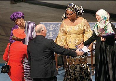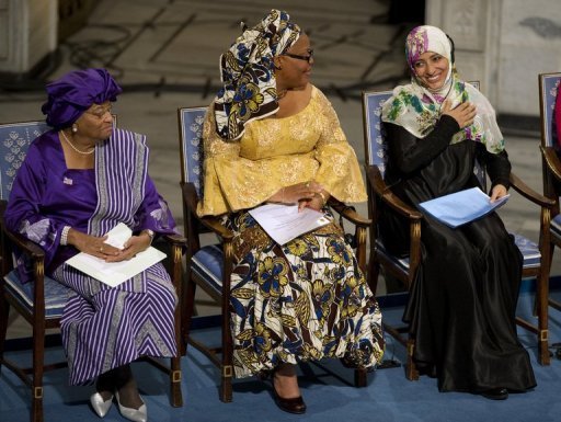 به گزارش آسوشیتدپرس، این سه زن بهطور همزمان صلح نوبل را از آن خود کردند. سرلیف، رییسجمهور لیبریا، لیما گبووه، فعال جنبش صلحطلب زنان لیبریا و کرمان، روز گذشته در نروژ مشترکا روی کرسی صلح نوبل نشستند.