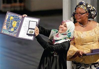 شوربورن یاگلاند، رییس کمیته جایزه نوبل میگوید: اعطای این جایزه به این سه زن، نشانه حمایت ما از بهار عربی، زنان و احترام به مسلمانان است.