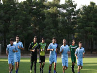 * بازیکنان استقلال بعد از تمرینات اولیه آقا وسط انجام دادند.سپس برای انجام فوتبال در قالب دو تیم آبی و نارنجی تقسیم شدند. قبل از بازی بازیکنان دو تیم حلقه اتحاد تشکیل دادند.