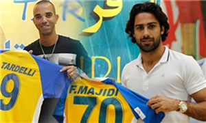 عصر ايران ورزشي - فرهاد مجيدي در مراسم آشنايي با ديه گو تاردلي، مهاجم الغرافه قطر.