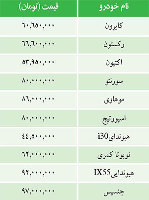قيمت برخي خودروهاي وارداتي