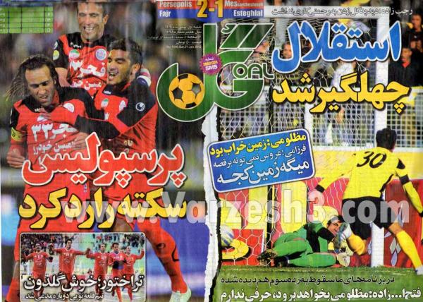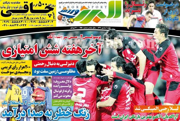 مهمترین عناوین ورزشی امروز(شنبه) را در صفحه نخست این روزنامه ها مشاهده نمایید. اغلب روزنامه ها تیترهای خود را به شکست استقلال و پیروزی پرسپولیس اختصاص داده اند.