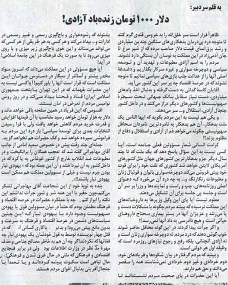 دلار 1000 تومان ؛ زنده باد آزادی
