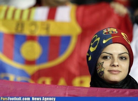 عکس/ بانوی محجبه دو آتشه طرفدار بارسلونا