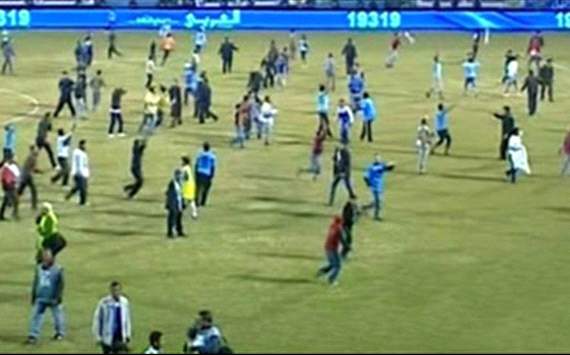 گزارش شده که طرفداران المصری، طرفداران الاهلی را در زمین چمن و در اطراف ورزشگاه محاصره کردند و به سمت آنها سنگ و بطری پرتاب کردند.