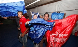 * داخل ورزشگاه چادرهایی برپا شده است و هوادارانی که مشکل دارند را راهنمایی میکند.