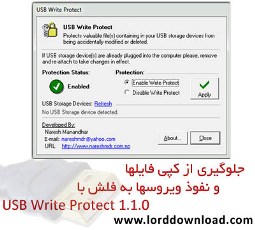 USB Write Protect یک نرم افزار رایگان و بسیار سبک بوده که نحوه عمل کرد آن بسیار سبک و ساده بوده و طوریست که اگر شما برنامه را فعال کنید دیگر هیچ فایلی در دیسکهای قابل برداشت یا همان Flash Desk ممکن نخواهد بود، چه به صورت ناخواسته مانند ویروس ، چه به صورت اختیاری مانند کپی فایلها به فلش!