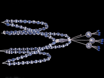 این تسبیح توسط یک لبنانی مقیم پاریس ساخته شده و شامل بیش از 16 هزار و 700 قطعه الماس و یاقوت آبی است.
