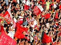 * حدود 40 هوادار کرمانی با لباسهای نارنجی رنگ در ورزشگاه آزادی حضور دارند و به تشویق تیم خود میپردازند.