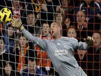 چند دقیقه بعد ضربه سر مارک ویلیامسون به تیر دروازه لیورپول برخورد کرد.
