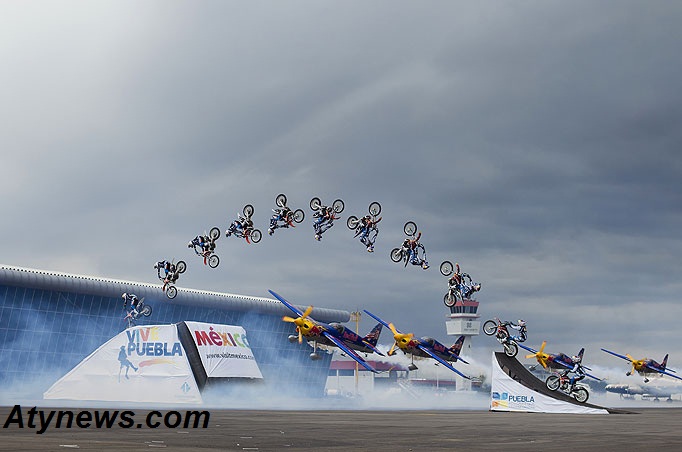 به گزارش سرویس بین الملل شبکه خبری آتی نیوز، یک موتورسوار بدلکار مشهور اهل جمهوری چک به نام( Petr Pilat) که به خاطر حرکات آکروباتیک فوق العاده اش با موتور مشهور است با کمک خلبان مشهور حرکات مار پیچ و مانور و برنده چندین دوره جام ردبول به نام (Kirby Chambliss ) دست به انجام یکی از فوق العاده ترین حرکات بدلکاری آکروباتیک سالهای اخیر زدند.