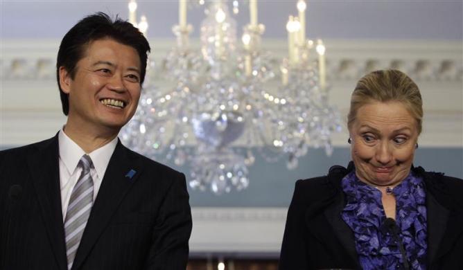 چهره جالب و دیدنی هیلاری کلینتون در خلال جلسه با وزیر امور خارجه ژاپن در واشنگتن