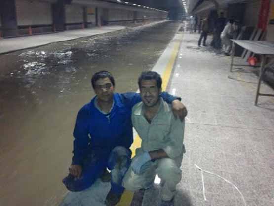 تصویر: عکس یادگاری کنار رودخانه مترو پس از بارشهای شدید باران در تهران برخی ایستگاههای متروی تهران دچار آبگرفتگی شدند