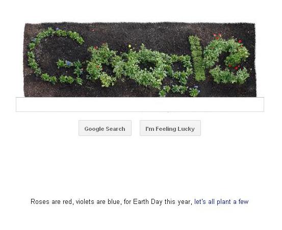 مدیران موتور جستجوی گوگل به مناسبت «روز زمین» دست به ابتکار جالبی زدهاند و به رسم همیشگی لوگویی خاص طراحی کردهاند که در آن با استفاده از بوتههای گیاه اسم این سایت نوشته شده است اما ابتکار جالب گوگل اینجاست که بعد از لحظاتی این بوتهها گل میدهند و زیباییهای محیط زیست سیارهمان را یادآوری میکنند.