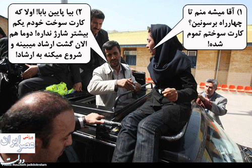 اون دختری که روی ماشین احمد نژاد بود .یه دختر هرمزگانیه که قهرمان وشو هستش