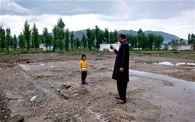 عصر ایران - عکس گرفتن پدر و پسر پاکستانی در مقابل محل خانه تخریب شده اسامه بن لادن در ابوت آباد.منزل مسکونی بن لادن قبل از تخریب