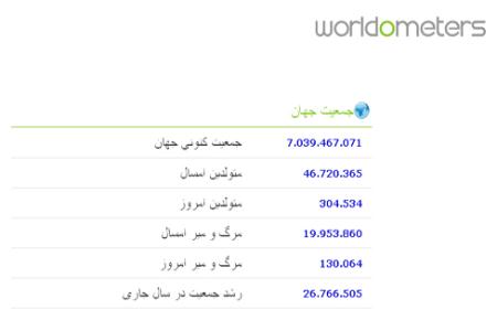 امروز می خواهیم یک سایت مفید و کاربردی را که ریزترین آمار جهان را به چندین زبان مختلف در خود جای داده است به شما معرفی کنیم.برای اینکه بدانید چه آماری در این سایت وجود دارد روی تصویر زیر کلیک کنید.