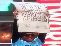روز دوشنبه و درحالي که کاروان باشگاه سيتي برروي اتوبوسي سرباز در جشن قهرماني شرکت داشت و ازميان هواداران عبور مي کرد، کارلوس ته وز با پلاکاردي که رويش نوشته شده بود:«روحت شاد فرگي» ديده مي شد.اين اقدام ته وز در حقيقت واکنشي به صحبتهاي اخير مربي يونايتد بود که گفته بود که در طول زماني که او زنده است، سيتي به قهرماني ليگ برتر نخواهد رسيد .