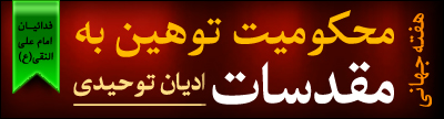 ما " فدائیان امام علی النقی (ع) " با کمک خبرگزاری ها، سایت ها و وبلاگ های فعال در عرصه فضای مجازی بنا داریم تا انشاءالله از تاریخ 30 اردیبهشت ماه 1391 تا تاریخ 5 خرداد ماه 1391 را به عنوان " هفته جهانی محکومیت توهین به مقدسات ادیان توحیدی" نامگذاری نماییم و در این هفته که منتهی به روز شهادت امام علی النقی (ع) می باشد، با تمام توان به تولید