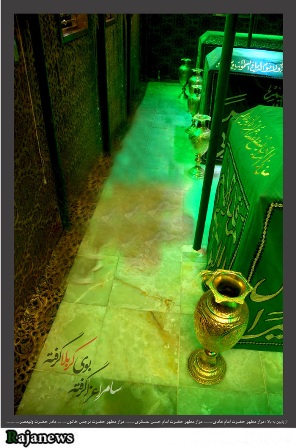 تصوير حاضرمربوط به درون ضريح مقدس حضرت امام هادي عليه السلام است. در اين تصوير به ترتيب از بالا، مزار مطهر امام هادي عليه السلام، مزار مطهر حضرت امام حسن عسكري عليه السلام و مزار مطهر حضرت نرجس خاتون، مادر امام زمان عج الله تعالي فرجه الشريف ديده مي شود: