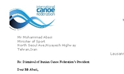 متن نامه خوزه پرورنا، رئیس کنفدراسیون بین المللی قایقرانی خطاب به محمد عباسی، وزیر ورزش و جوانان مبنی بر تعلیق موقت فدراسیون قایقرانی ایران به شرح زیر است: