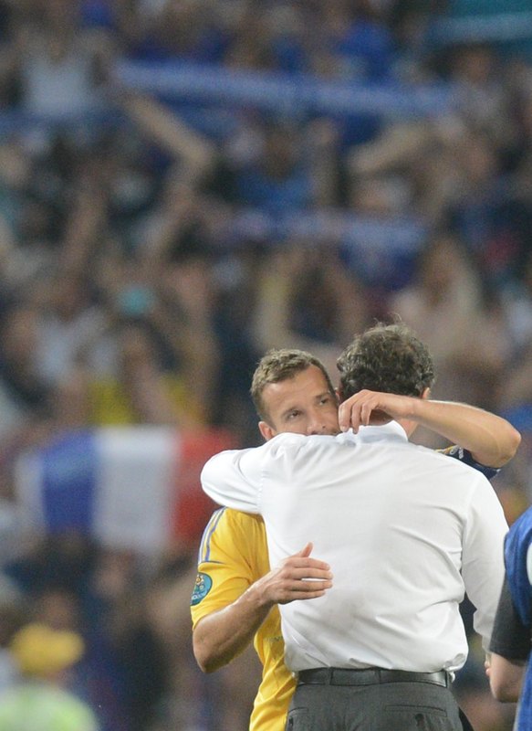 عصر ایران ورزشی - آندری شوچنکو، پس از شکست اوکراین در برابر فرانسه، لوران بلان را در آغوش می کشد. برای خواندن سایر خبرهای ورزشی کلیک کنید
