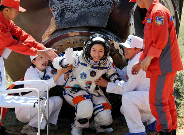 بامداد جمعه 9 تیر، فضاپیمای شنزهو9 با موفقیت در خاک چین فرود آمد و سه فضانورد آن از جمله لیو یانگ، نخستین فضانورد زن چینی در سلامت کامل خارج شدند. یانگ خود را نماینده میلیونها زن چینی نامیده است.