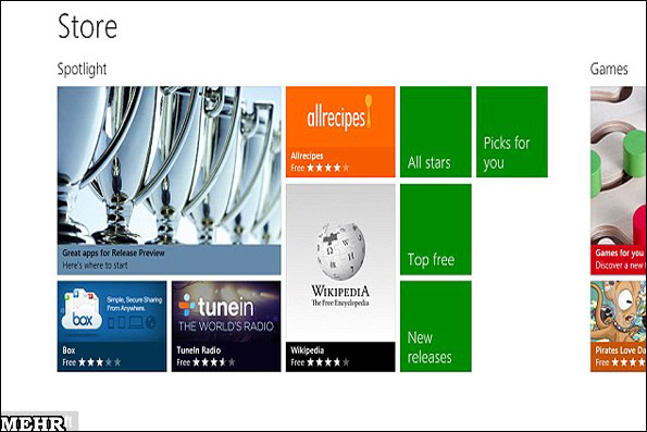 فروشگاه جدید ویندوز با گرفتن ایده از فروشگاه های برنامه های اجرایی اندروید و اپل عرضه شده و کاربر می تواند با حرکت بین صفحات از امکانات بیشتر برخوردار شود